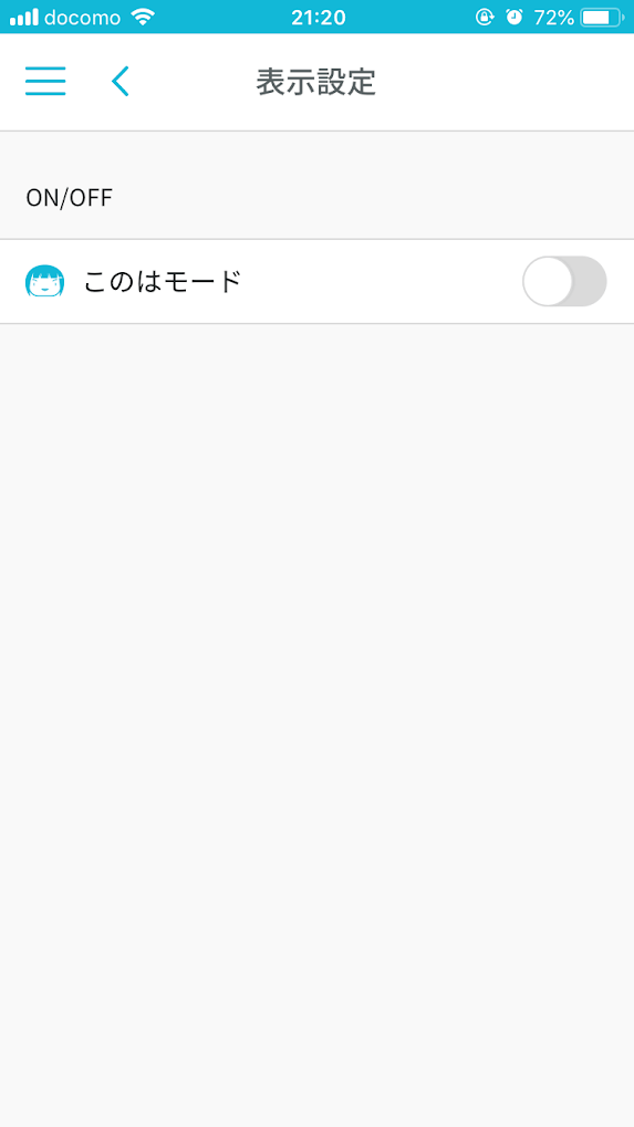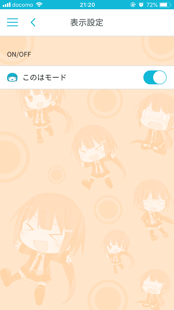 実はスマホアプリにもこのはモードが実装されており、このはモードにすることができます。