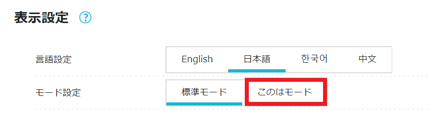 これで「このはモード」に切り替わります。