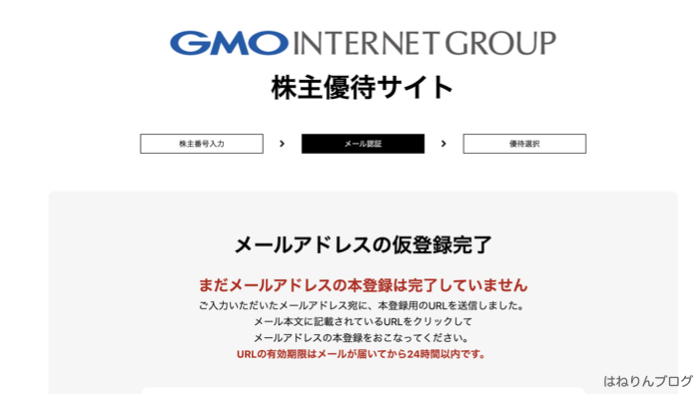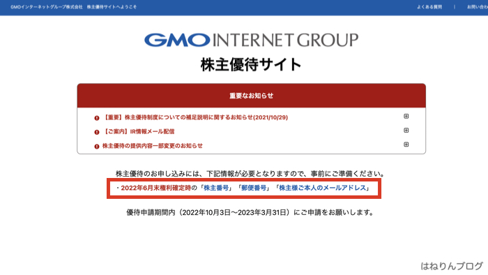 まずは、GMOの株主優待申請サイトを開きます。