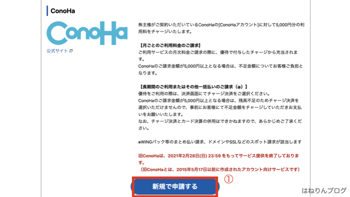 ConoHaの割引を申請する