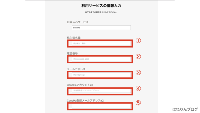 4. ConoHaアカウント:ConoHaのアカウント番号を入力する
