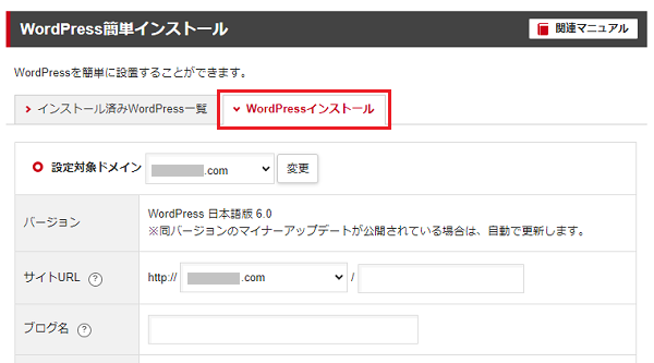 クイックスタートを利用していない場合には、WordPressのインストール作業をします。